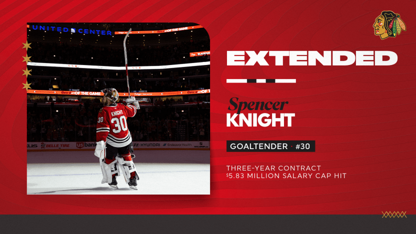 Spencer Knight has signed a 3-year extension with the Blackhawks with a $5.83 million salary cap hit. “After joining the team in March, Spencer quickly cemented himself as a crucial piece of our future,” said Blackhawks General Manager Kyle Davidson. “A talented, young goaltender, he brings athleticism, sound positioning and a calm demeanor to his game, and we’re excited to watch Spencer continue to flourish in Chicago over the next four seasons.”